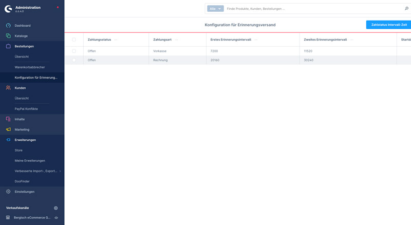 Du kannst einstellen, in welchem Zahlungsstatus und Bestellstatus die Zahlungserinnerung erfolgen soll. Ebenfalls kannst du die Zeit, nach der die erste und zweite Zahlungserinnerung gesendet wird, beliebig einstellen (Wert in Minuten).